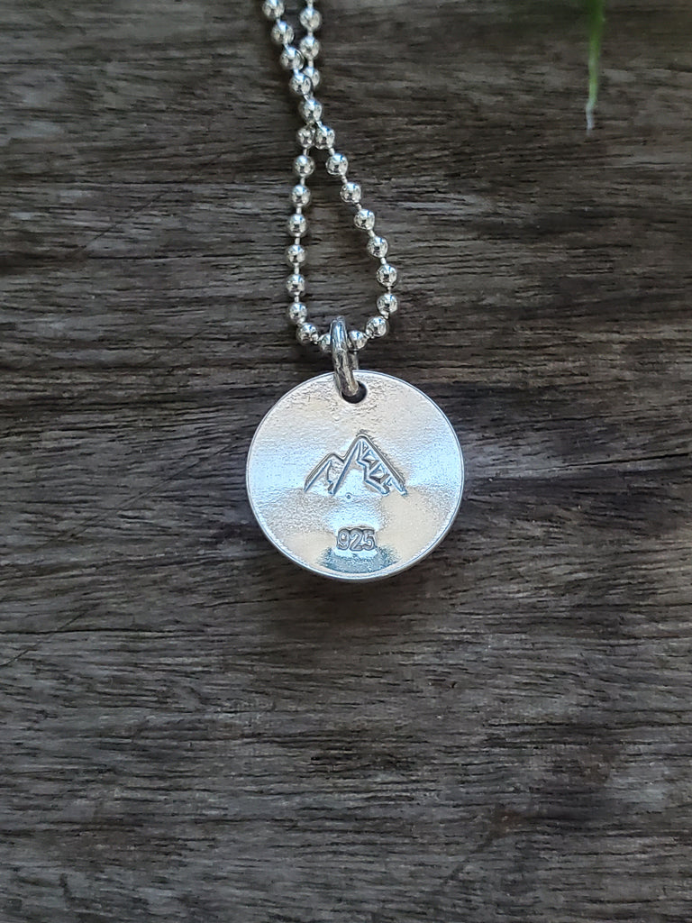 This Orville Jack Turquoise necklace is handmade using ethically sourced stones and recycled sterling silver. Resting on a 16" chain, this Orville Jack Turquoise necklace displays hues earthy greens inspiring us with the natural beauties found in nature. This necklace features handstamped details on the back of the pendant. The circular shape of the necklace symbolizes wholeness, eternity and all cyclic movement.
